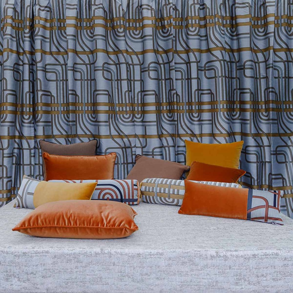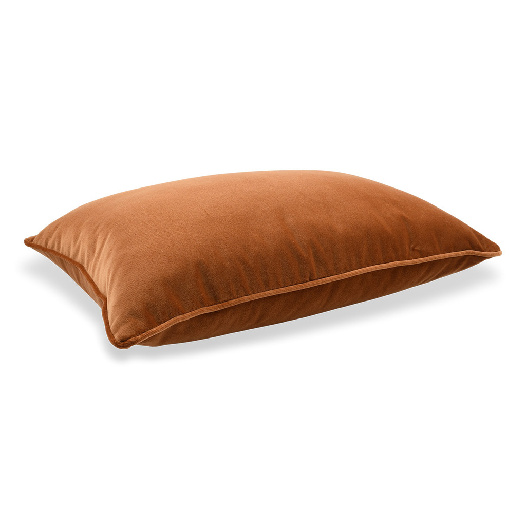 Decorative rectangular cushion for your bed and sofa in soft cotton velvet, finished with a matching piping, perfect for summery interiors.