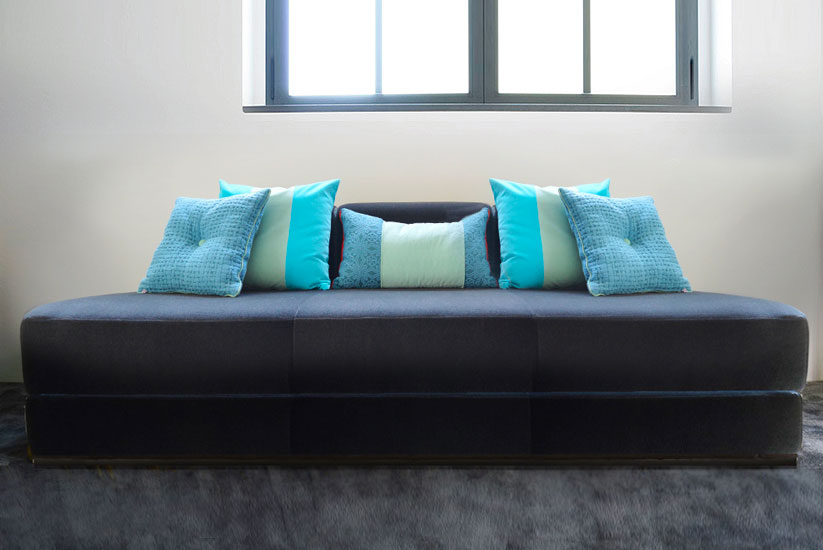 comfortable thanks to a waterfall of refined cushions made with a jacquard textile
